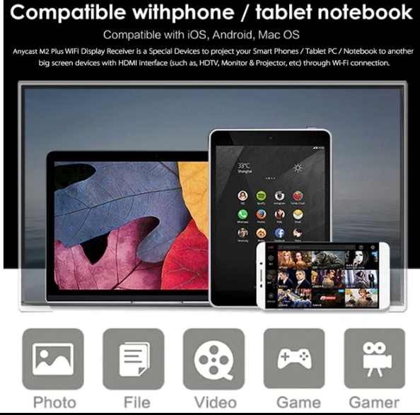 با استفاده از دانگل HDMI آی فورتک مدل M9 Plus می توانید تصویر موبایل یا تبلت خود را روی صفحه نمایش های دارای پورت HDMI مشاهده نمایید. این دستگاه برای نمایشگر هایی که قابلیت اتصال به اینترنت WIFI دارند مناسب بوده و دارای 128 مگابایت ظرفیت می باشد. اگر می خواهید تصاویر خود را کیفیت بالا روی تلویزیون مشاهده نمایید این دانگل را به شما پیشنهاد می کنیم. در کنار این دستگاه یک انتن قرار داده شده است که به وسیله پورت Mircro USB به دانگل متصل می شود. در سر دیگر این کابل خروجی USB قرار داده شده است تا بتوانید با استفاده از آن و به صورت سیمی نیز به انتقال اطلاعات بپردازید.
