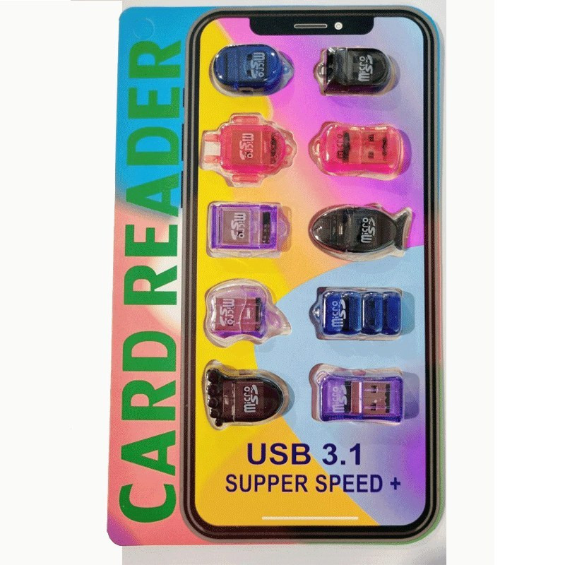 اگر فقط از کارت حافظه «microSD» روی گوشی و تبلت خود استفاده میکنید، نیازی نیست که کارتخوان بزرگی با چند درگاه برای کارت حافظههای مختلف داشته باشید. کارت خوان مدل Micro-SD با ابعاد بند کوچک و وزن کمی که دارد، میتواند بهراحتی همیشه همراهتان باشد. حمل و نگهداری آن درون جیب لباس یا کوچکترین جیب کیفها امکانپذیر است. حتی میتوان آن را به دستهکلید خود وصل کنید تا همیشه آن را همراه داشته باشید. این کارتخوان کارآمد که روکشی از آلومینیوم دارد، چیزی حدود 5.2 گرم وزن دارد و طول و عرضش به ترتیب حدود 25 و 15 میلیمتر است. مانند فلشهای بندانگشتی است و درپوشی برای محافظت از کانکتور «USB» دارد. پس از قرار دادن کارت حافظه microSD درون کانکتور این کارتخوان، میتوانید آن را به کامپیوتر یا لپتاپتان وصل کنید و انتقال اطلاعات تحت رابط USB 2.0 را انجام دهید. به دلیل مدلهای مختلف کارتخوان در پک 10 تایی ممکن است شکل و رنگ کالای دریافتی با عکس متفاوت باشد.