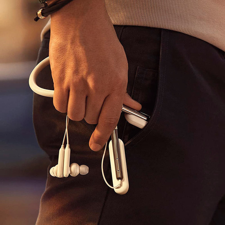 هدفون توگوشی بیسیم مدل «U Flex» از سری هدفونهای بیسیم باریک و سبک است که میتوانید تمام روز از آن استفاده کنید و لذت ببرید. هدفون U Flex طوری طراحی شده است که دور گردن شما قرار میگیرد و احتمال افتادن آن کم است. از ویژگیهای مطلوب این هدفون ، میتوان به قابلیت صدای شفاف و واضح اشاره کرد؛ همچنین انعطافپذیری دورگردنی هدفون، بهراحتی امکان جابهجایی و قرادادن آن در جیب یا کیف را فراهم میکند. پاسخ به تماسهای تلفنی و پخش آهنگ فقط با فشردن یک دکمه برای شما امکانپذیر است. با این هدفون بهراحتی میتوانید تماسهای تلفنی خود را برقرار کرده و با دکمهی تعبیهشده روی آن تماس خود را مدیریت کنید؛ همچنین میتوانید با آن از گوشدادن به موسیقی لذت ببرید. این هدفون گردنی بیسیم بهوسلیهی بلوتوث به گوشی همراه شما متصل میشود و شما را از قید و بند کابلهای صوتی رها میکند. گفتنی است، هدفون U Flex دارای سرگوشیهای سیلیکونی است که با استفادهی طولانیمدت احساس ناخوشایندی در شما ایجاد نمیکند. در قسمت پشتی گوشیها خاصیت مفناطیسی وجود دارد، این ویژگی از رهاشدن آنها جلوگیری میکند.