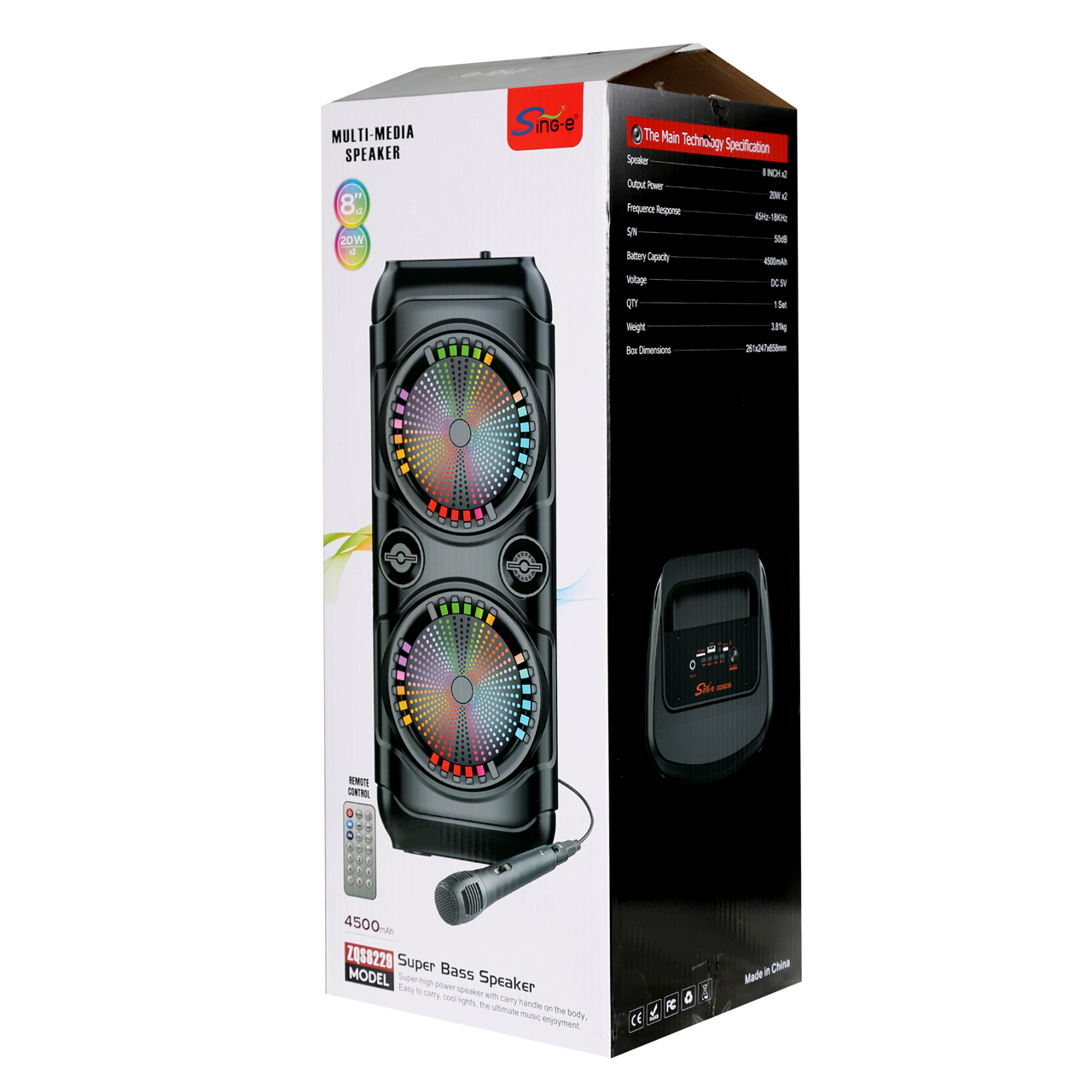 اتصالات گسترده: پشتیبانی از بلوتوث ۵.۰، USB، کارت حافظه TF، AUX، رادیو FM، ورودی میکروفون، و قابلیت TWS برای اتصال دو اسپیکر بهصورت استریو.