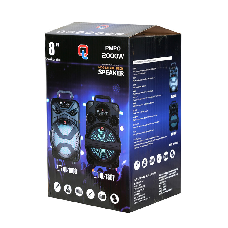 اتصالات گسترده: پشتیبانی از بلوتوث ۴.۲، USB، کارت حافظه TF، AUX، رادیو FM، ورودی میکروفون، و قابلیت TWS برای اتصال دو اسپیکر بهصورت استریو.