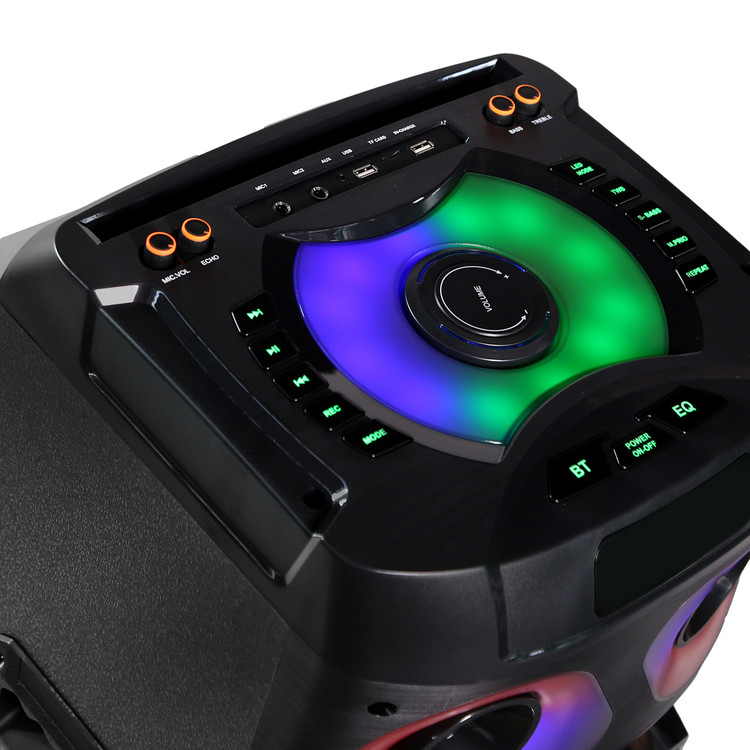 میکروفون بیسیم: وجود میکروفون بیسیم همراه اسپیکر، امکان اجرای زنده و کارائوکه را فراهم میکند.