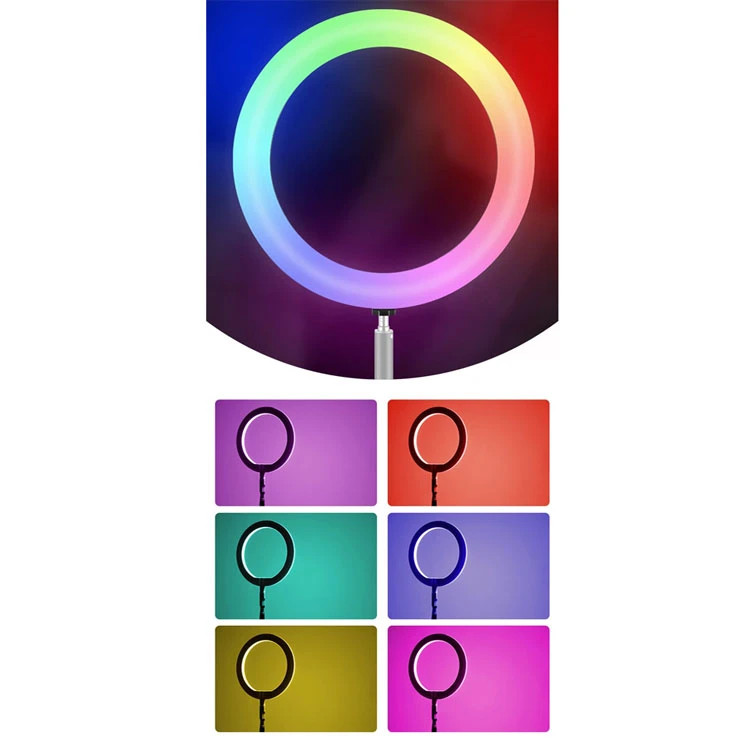رینگ لایت RGB LED سایز ۲۶ سانتی متر دارای ۱۵ طیف رنگ و قابلیت تنظیم روشنایی در ۱۰ حالت قابلیت تنظیم رنگ های سرد-گرم وطبیعی بوسیله ریموت مناسب برای عکاسی و فیلمبرداری حرفه ای قابلیت چرخش ۳۶۰ درجه قطر خارجی رینگ لات : ۲۶ سانتی متر امکان نصب نور بر روی سه پایه(کالا فاقد رینگ لایت میباشد) دارای پایه نگه دارنده گوشی که تا سایز ۶.۵ اینچ ساپورت میکند فرکانس نور ۵۰-۶۰ HZ دارای نور ۱۰۰۰ لومن ولتاژ ورودی: ۵ ولت توان خروجی نور: ۲۰ وات دارای ۹ طیف رنگ دارای ۱۵ حالت نور ترکیبی RGB
