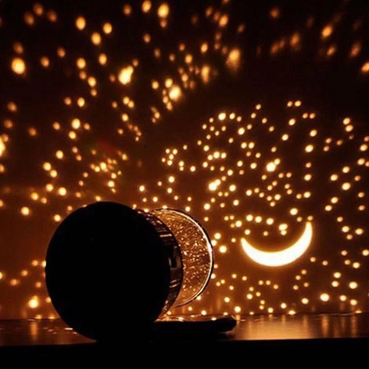 تابش صدها ستاره و ماه بر روی دیوار – مناسب برای خواب کودکان و نوزادان – شبها روی سقف و دیوارهای اتاق را ستاره باران می کند و زمان خواب را به زمانی شاد و مفرح تبدیل می کند.