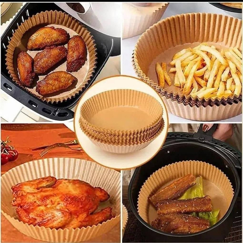 قطر کف 20سانتی متر قطر بالا 25 سانتی متر ارتفاع 4.5 سانتی متر حاوی 50 عدد کاغذ ایر فرایر مناسب جهت سرخ کن های هواپز یا بدون روغن